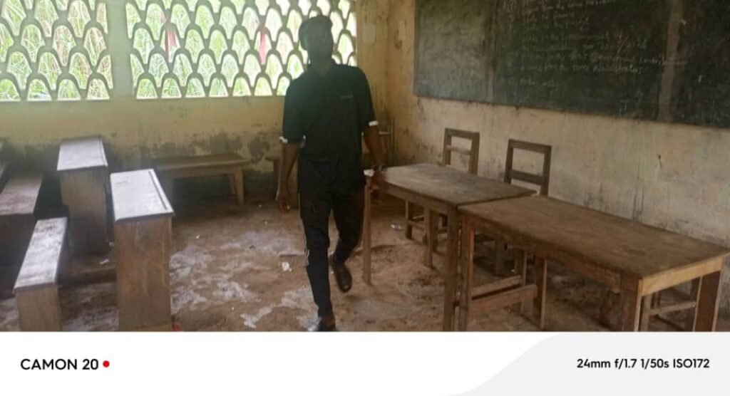 Before the Anglophone crisis, the infrastructure was already in poor condition. Since 2017, the conflict has worsened the situation, with gunfire damaging the walls, military raids destroying parts of the building, and lack of maintenance leaving the classrooms unsafe.